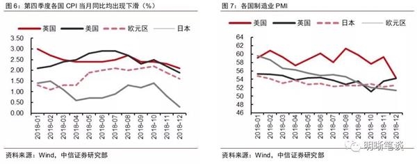 通胀压力放缓和贸易摩擦压力增大背景下,全球多央行出现转向迹象。1月31日FOMC会议上,美联储释放出强烈鸽派信号;1月24日欧央行利率决议会议上,欧元区三大利率维持不变,欧央行货币正常化进程延长;1月23日,日本央行下调核心CPI预期和当面财年的GDP增速预期;同日,由英国央行下调今明两年经济增长预期。全球贸易下行压力增大的背景下,发达经济体货币政策正常化进程中出现转向迹象。