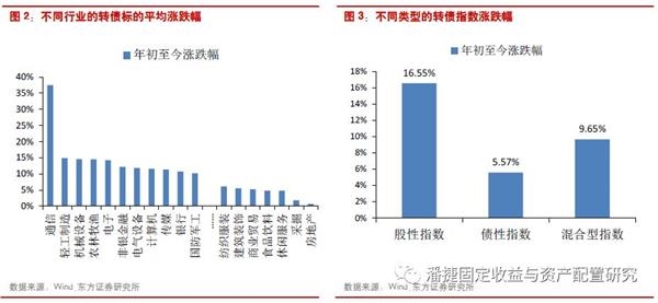 分行业来看,电子、通信、计算机、非银金融、农林牧渔、电气设备等板块表现较好。年初至今,股票中板块涨幅超过20%的行业有电子、非银金融、农林牧渔、通信、家用电器、计算机、电气设备等;转债中,板块平均涨幅超过10%的有通信、轻工制造、机械设备、农林牧渔、电子、非银金融、电气设备、计算机、传媒、银行、国防军工等。