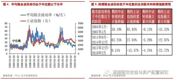 转债当前估值并不构成投资约束,仍然具有性价比。2003年1月以来转债市场的平均隐含波动率的中位数约为25.4%,平均数约为29.8%,目前的隐含波动率水平处于历史上37%左右的分位数水平。从之前两次股市筑底回升的时期来看,转债的隐含波动率都处于中位数以下,期间回撤风险都不大。并且,在股市由熊转牛的阶段,转债的隐含波动率会出现回升,从拐点来看转债提估值的时点有1次领先,1次同步于股市上涨的拐点。