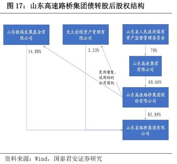 2018 年12月12日,山东高速路桥集团股份有限公司、山东省路桥集团有限公司(标的公司)与山东铁路发展基金有限公司和光大金瓯资产管理有限公司共同签署《关于山东省路桥集团有限公司市场化债转股之增资协议》,山东高速路桥集团股份有限公司拟在子公司山东省路桥集团有限公司层面实施市场化债转股,由山东铁路发展基金有限公司和光大金瓯资产管理有限公司2家投资机构(合称“投资者”)以现金分别对标的公司增资10亿元和1.5亿元,增资金额合计11.5亿元,标的公司所获现金增资款用于偿还其存量债务(图17)。