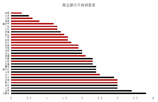 从银行的不良率看,中西部地区及北方的地区的不良高于东部及长江以南地区。如内蒙、甘肃、山东、东北、云贵等省份的不良率很高。北京、上海、广东等较低。