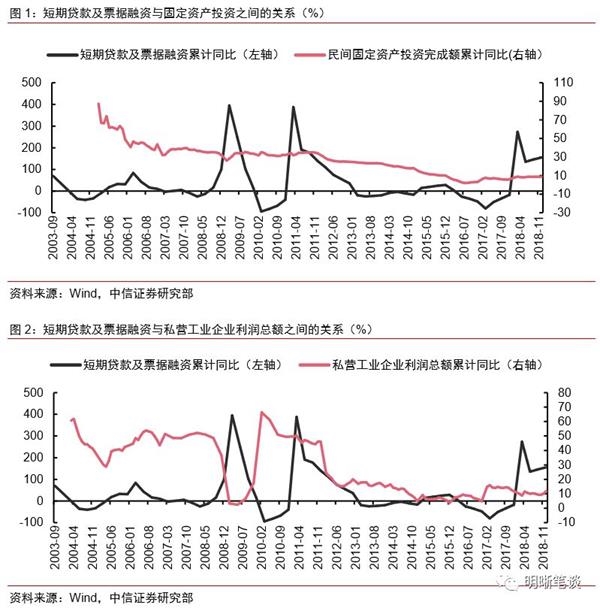 回溯历史数据我们发现,2008年下半年到2013年初短期贷款及票据融资增速大幅波动,而反映民企投资水平的指标民间完成额增速,自2007年初以来呈现稳步回落的趋势,并没有出现相应大幅波动的阶段。私营企业增速和利润总额增速变化趋势与短期贷款及票据融资增速变化趋势大致相同,但是在某些时间段出现了背离。比如2018年2月份以来,私营企业工业增加值增速与利润总额增速双双表现平稳,但是短期贷款和票据融资增速出现大幅上升。