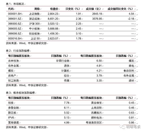 2019年2月25日,银行间加权利率大体上行,隔夜、7天、14天、21天和1个月分别变动了23.07bps、19.32bps、16.7bps、27.48bps和-19.18bps至2.24%、2.51%、2.38%、2.42%和2.62%。国债到期收益率涨跌互现,1年、3年、5年、10年分别变动1.19bps、0.28bps、-1.09bps和-0.31bp至2.36%、2.69%、2.90%和3.12%。上证综指收涨5.6%至2961.28,收涨5.59%至9134.58,收涨5.50%至1536.37。