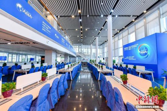 博鳌亚洲论坛2019年年会新闻中心工作大厅。中新社记者 骆云飞 摄