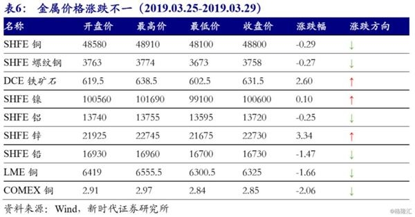 金属价格涨跌不一,南华金属指数上行0.74%至3037.69。高炉开工率回升,供给增多,下游采购有所放缓,利空螺纹钢价格。国内库存季节性积累仍在延续,下游消费旺季尚未到来,利空铜价。