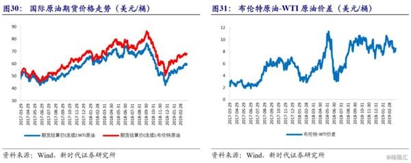国内及国际原油价格走势不一致。上周INE原油价格下行0.65%,收至457.9元/桶。国际原油方面,ICE布油价格上行1.14%收至67.55美元/桶;NYMEX原油(WTI原油)价格上行2.05%收至60.18美元/桶。近期公布的全球一系列经济数据出现疲软迹象以及贸易局势不确定性引发市场对全球经济增速放缓的担忧,叠加美国原油库存超预期增加,利空油价。美国原油库存方面,截至3月22日当周,美国EIA原油库存增加280万桶,预期减少94.55万桶,前值减少958.9万桶;美国API原油库存增加193万桶,预期减少240万桶,前值减少213.3万桶。