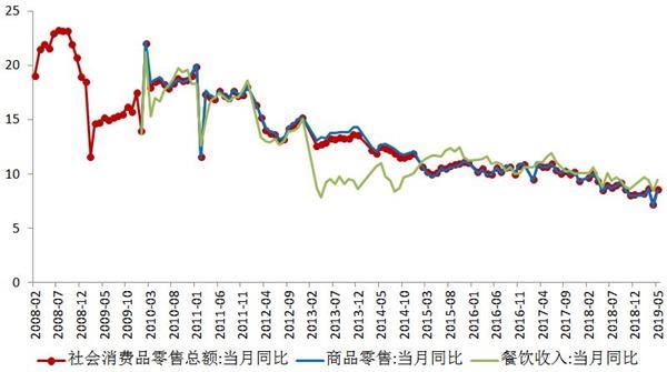 消费整体运行平稳,对经济增长的贡献度增强。汽车类消费低迷对消费增速形成拖累,下半年汽车类消费可能有所改善。受前期商品房销售面积增长放缓的影响,建筑及装潢材料类消费出现近10年来首次负增长,家具、家电类产品消费增速也有下降。居民部门杠杆水平持续上升将对消费起到抑制作用。促进消费的新政策正在密集出台。打造区域消费中心和国际消费城市,落实汽车、家电、信息、养老、育幼、家政等领域促进消费政策,将对下半年消费增长起到积极作用。推进并落实个税改革,降低个人税收负担,将有助于在一定程度上提振消费。预计2019年消费增长8.5%左右。