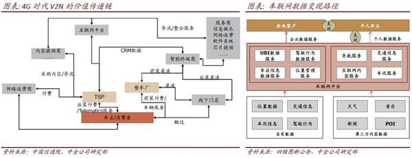 网络运营和内容市场规模和商业模式走向多元。我们预计流量费高速提升,年新增市场有望随渗透率增长从3亿元提升至500亿元;商业模式从最基础的直接由消费者或厂商付费,逐渐产生了数据变现等具有互联网色彩的商业模式,规模千亿元。车企、互联网公司、设备商、运营商、图商等各方都有望从市场分享红利。