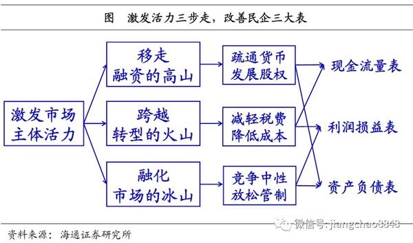 今年初《政府工作报告》开门见山指出,“要处理好政府与市场的关系,依靠改革开放激发市场主体活力。只要市场主体有活力,就能增强内生发展动力、顶住经济下行压力。”在我们看来,激发民企的关键在于帮助民企依次越过“三座大山”:通过疏通货币渠道、发展直接融资来移走融资的高山;通过减轻税费负担、降低成本费用从而改善企业盈利来跨越转型的火山;通过秉持竞争中性、放松进入管制来融化市场的冰山。目前我们已经实施了减税降费,也在积极改善民企融资难、融资贵问题,而随着进一步放松管制、打破垄断,民营企业将有望迎来更广阔的发展空间!