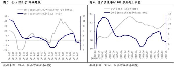 2.1。杠杆率上升拉动全A非金融石油石化ROE降幅趋缓