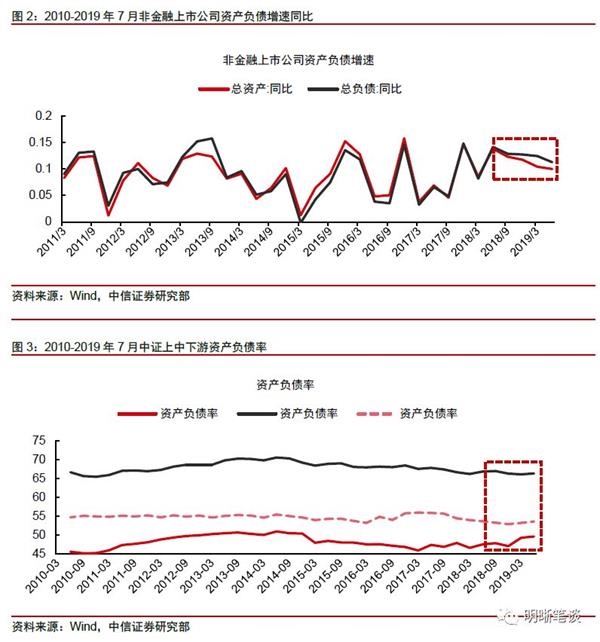 时间进入9月,各大上市公司陆续公布了自身的半年报。企业半年报的推出给予我们一个很好的工具去观察企业负债行为和经营行为的关系。令人疑惑的是,从非金融上市公司资产负债表的数据来看,上市公司整体的资产负债率是整体上升的;但企业融资需求偏弱、信用投放不足是2019年2季度以来的共识,统计局提供的工业企业资产负债率同样提示我们工业企业在边际上处于去杠杆进程。