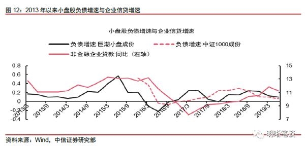 中小盘股负债端增速更能反映企业整体融资情况。观察中小盘股总负债增速与非金融企业贷款增速的关系,我们发现二者的相关性相较大盘股要好,因此我们认为小盘股负债端特征更能反映企业整体融资情况。当然,我们仅能每季度获得一次上市公司财报,但我们同样认为短期内企业的经营行为很难有巨大的转变。那么可以认为多数企业依旧面临着“资质分化”带来的“融资难问题”,更多的银行信贷依旧集中于大盘龙头企业,“宽信用”的推进因为银行难以推进“资质下沉”而受到阻碍。