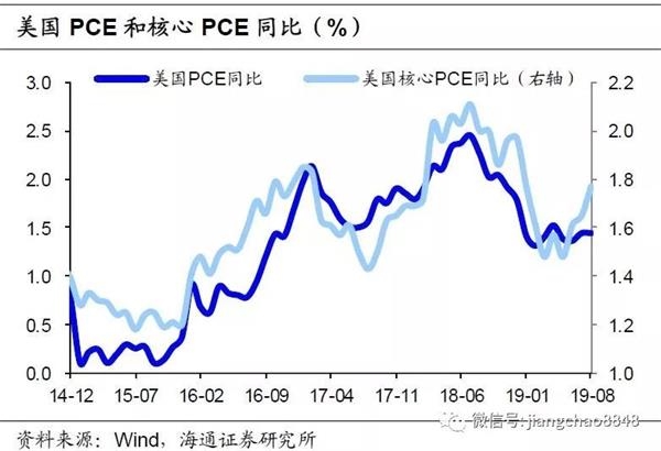 近期美国通胀相对稳定。8月美国的PCE同比继续稳定在1.4%,而核心PCE同比升0.1%至1.8%,触及今年以来新高。而10月公布的美国9月CPI同比和核心CPI均维持在1.7%和2.4%。一方面就业市场仍保持强韧,失业率维持低位,另一方面关税提升对居民消费的影响也逐渐增强。