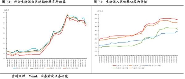 从各个地区生猪价格高频数据看,短期内,部分生猪流出区的生猪价格有所回调,但生猪流入区的生猪价格依然保持在高位。价格回调,一方面可能是价格上涨过快抑制需求,另一方面也可能是近期疫情再出现,短期加速生猪出栏。从整体生猪存栏和出栏情况看,当前供需缺口仍大,价格短期调整不改猪价强劲趋势(图7)。
