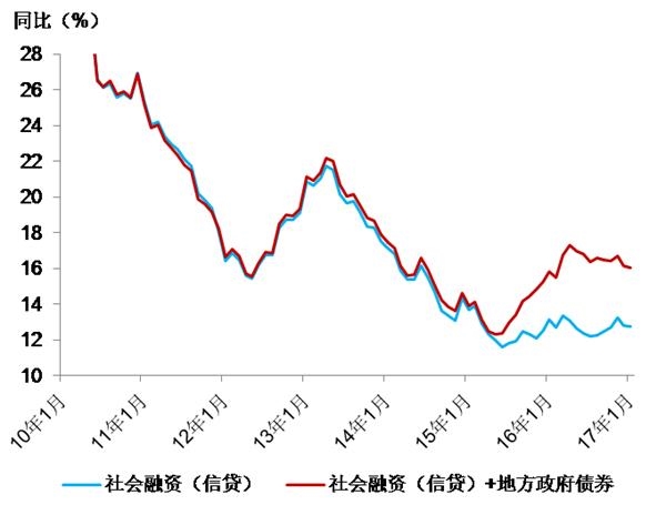 1月份信贷也表明企业长期投资在增加,或与PPP项目建设加速有关。1月份人民币信贷创一年新高,主要增长来源为企业中长期贷款和房贷,前者应与PPP项目关联度大而后者可能与去年积压下来的项目有关。社融增量3.74万亿元,创历史新高。其中表内融资、表外融资、未贴现票据融资、股票融资等主要项目均超预期增长。广义社融信贷存量增速虽略有回落,但仍维持在16%以上,鉴于信贷增速对经济影响的时滞效应,二季度经济仍然受到较强信贷的支持。2月15日央行工作论文提出应合理把握去杠杆和经济结构转型的进程,应避免过快压缩信贷和投资可能引发的流动性风险,暗示信贷增速放缓是渐进的。
