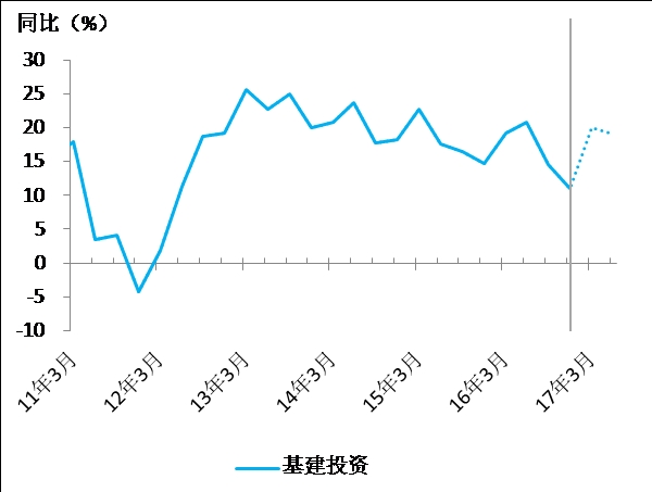 图5:基建投资增速在今年上半年可能再度恢复到20%