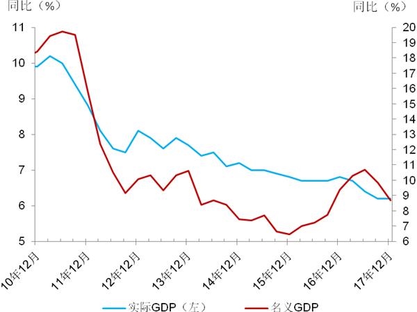 图9:中国名义GDP 和实际GDP