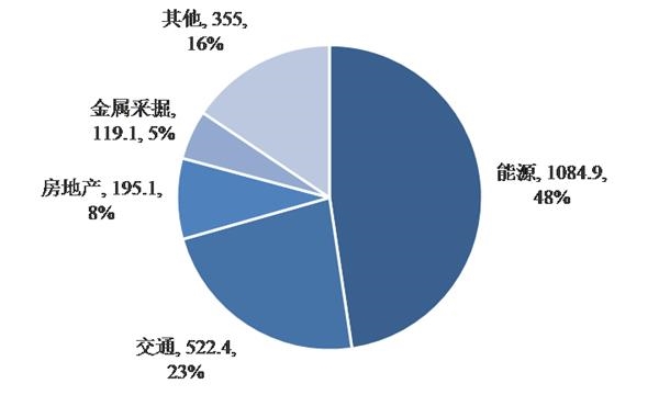 图15:“一带一路”国家在不同行业的直接投资和建设合同金额(亿美元,13年至16年6月)