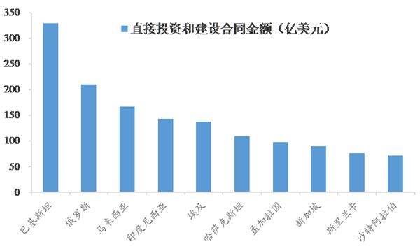 图14:2013年后中国对“一带一路”国家的直接投资和建设合同金额排名前十的国家