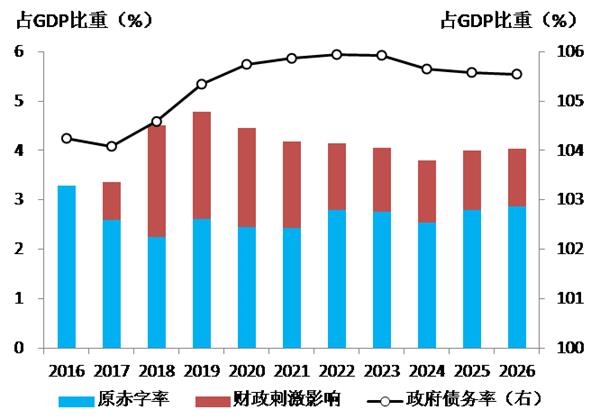图18:美国财政刺激提升赤字率但总体债务率可控