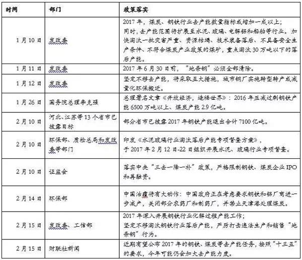 表1:以来去产能改革推进表