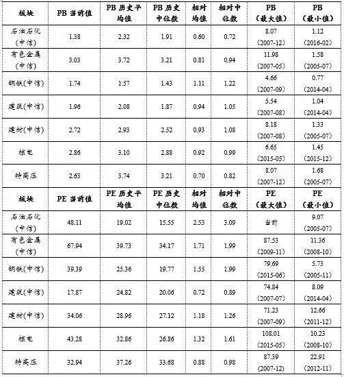 第一,相对估值角度,当下周期品各个板块估值仍处于历史相对低位,具备上行空间。综合而言,PB相对估值水平看,相对优势排序:石油石化>特高压板块>>建材>建筑>钢铁。PE相对估值水平看,相对优势排序:建筑>特高压>建材>钢铁>有色>石化。