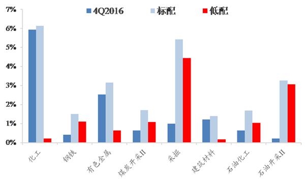 4)周期品整体低配,机构博弈仍有改善空间。仓位博弈角度,从4Q16基金持仓来看,主板配置比例继续上升,中小市值超配比例快速收缩,但仍处于较高超配水平。中小企业板2016Q4配置比例22.8%,超配6.4%,2016Q4配置比例为16.9%,仍超配9.1%。而核心周期品多数仍处于低配位置,钢铁低配1.09%、煤炭低配1.06%、石油开采低配3.06%,仓位结构为周期品行情的演绎提供了有利的微观交易基础。
