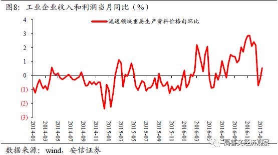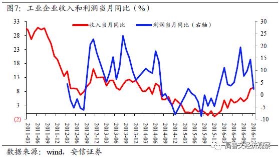 2016年,工业品价格的强劲上涨,带来了工业企业盈利的显著恢复。全年工业企业收入同比4.9%,利润同比8.5%,主营业务收入利润率5.97%,较2015年分别回升4.1、10.8和0.21个百分点。