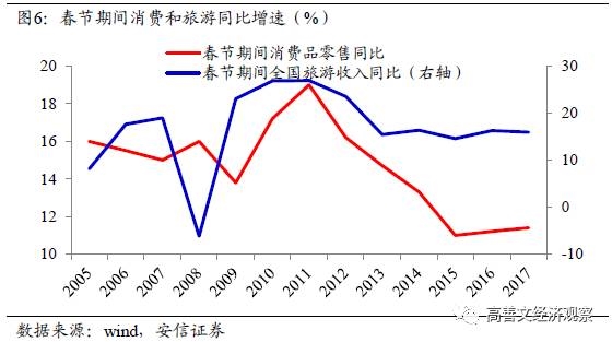 春节期间消费活动平稳。消费品零售总额8400亿,名义同比增长11.4%,较2016年增速高出0.2个百分点,连续第二年小幅走强(但剔除RPI以后实际增速有所走弱)。旅游收入4233亿,同比增长15.9%,在2013年以来的平台上保持稳定。