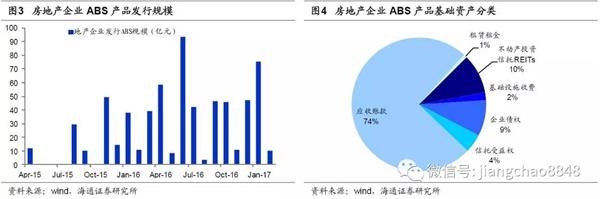 从基础资产来看,以应收账款为基础资产的BS产品规模占到74%,购房尾款ABS即是其中典型的一种。国内首单购房尾款ABS出现在2015年12月,由上海世茂建设公司发行,该类产品能够盘活尾款资金,提高资金周转率而受到地产公司的喜爱。但2016年末,为配合地产调控政策,监管层窗口指导暂停了以房地产企业购房尾款为基础资产的资产证券化(ABS),但其他类资产证券化产品并未被禁,仍可能是调控时期地产企业的重要融资方向。