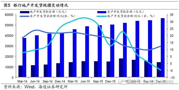 从披露的贷款规模来看,针对房地产的开发贷在16年二季度就已经出现明显减少,显示银行已经意识到地产风险。16年3季度房地产开发(包括地产开发和房产开发)贷款余额为70400亿元,较2季度末净减少300亿元,4季度有所回升,但也仅新增700亿元。