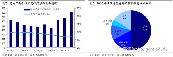 从基金子公司资管产品来看,根据用益信托网统计,2016年投向房地产领域的产品数量共计304只,投资金额约880亿元,相较15年130只、286亿元的发行量增加接近2倍。16年年内来看,上半年发行量集中,共计发行263只、776亿元,下半年不仅只数锐减,平均募集金额也大幅下滑。
