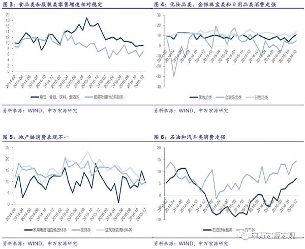 预计1-2月增长10.5%。主要商品中,受回升带动,石油及制品类的消费显著回升;而购置税优惠力度减弱之后,汽车消费明显回落。预计1-2月社零增长10.5%,较16年12月回落0.4个百分点。