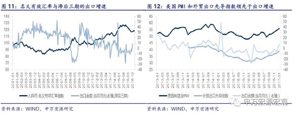 近来出口转暖受到几方面因素影响。一是汇率贬值的滞后影响,二是外需转暖带动。有效汇率大概领先出口增速三个月,美国的制造业PMI数据大约领先出口增速两个月,而外贸先导指数大概领先出口增速三个月。