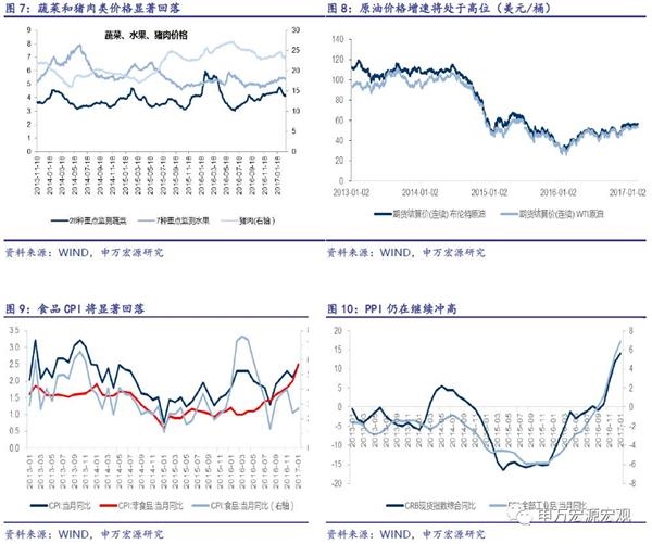 由于2016年1-2月油价基本处于30-40美元的区间,而目前布伦特原油价格已经上涨至56美元/桶,因此17年初油价增速将处于高位。而我们石化组预计的2017年油价中枢在59美元/桶。后续来看,随着油价的基数逐步抬升,对CPI和PPI的压力也会适当减轻。但在当前阶段,油价对CPI和PPI的影响还非常明显。