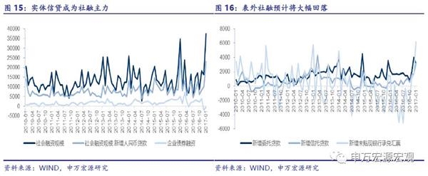 预计2月9500亿元,M2增长11.4%。信贷较1月将季节性下滑。由于债券收益率仍处于高位,企业仍将主要依靠信贷融资;且制造业投资和基建投资有望支撑企业中长期贷款。预计2月新增信贷9500亿元。信贷同比多增,且汇率暂稳、外汇占款跌幅收窄,预计M2增速小幅回升至11.4%。春节错位将导致M1增速显著回升至18.5%。2月社融也将季节性回落。从结构来看,实体信贷较1月显著回落,债券融资仍然较为低迷。在表外理财纳入MPA考核的压力下,表外社融扩张难以持续。预计2月新增社融1.8万亿元。