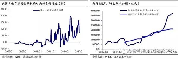 这样导致的结果是,银行对央行的负债近三年也迅速飙升。其它存款性金融机构对央行的负债在14年时不到2万亿,现在已经达到了9.4万亿。而且去年以来央行提供要低于市场,例如7天期央行逆回购利率为2.35%,而同期限的银行间同业拆借利率近期都在2.6%以上,银行间回购利率则更高。所以央行提供的资金要更廉价,银行肯定首选央行发的“红包”,但这一过程银行更多是被动的,且“红包”不是每家银行都能拿到,央行提供资金的量毕竟银行难以控制,所以银行主要还是要借用其它渠道来加杠杆。