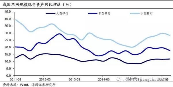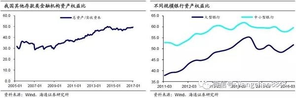 本轮中小型银行扩张速度要快于大型银行。小型银行的总资产增速从15年初的20%上升至16年的接近30%,中型银行从15%上升至近20%,而大型银行本身资产规模就较大、扩张空间有限,增速从8.5%微升至11.7%。所以本轮资产扩张比较迅猛的依然是中小型银行。