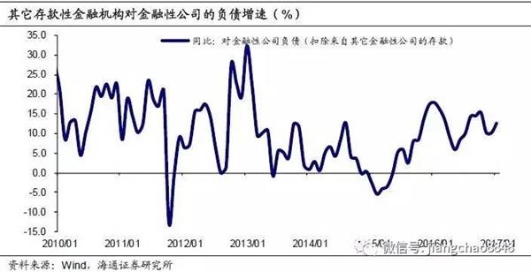 有何潜在问题?金融体系的风险在增加。如果扣除存款以后,增加的杠杆往往是金融泡沫的体现,因为如果银行体系的入了实体经济,最终又会以存款的形式回流到银行系统,而如果银行的资金只在金融体系中打转往往形成泡沫。此外,资产和负债息差收窄也将对银行、尤其是中小银行盈利构成巨大的威胁。M2低估货币增速,央行货币政策传导不畅。银行之间、银行与非银金融机构之间借贷、加杠杆创造的货币是没有被统计进入M2中的, M2低估了货币总量,导致金融机构内部创造的货币量失去控制式地增长。央行提供的廉价资金在金融市场打转,货币政策向实体的传导是不通畅的。