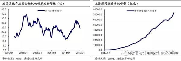 央行和银监会的考核监管趋严。银行业杠杆飙升、风险积聚的一大原因是对存单、理财等业务的监管不够严格,从近期相关官员的表态来看,未来监管趋严是一大趋势。一方面今年起表外理财资产扣除现金和存款等之后纳入广义信贷考核范围;另一方面,同业存单也存在纳入同业负债考核的可能性,而同业负债不能超过银行总负债规模的1/3。考核趋严后,未来表外理财和同业存单的增长或将逐步走向正常化。