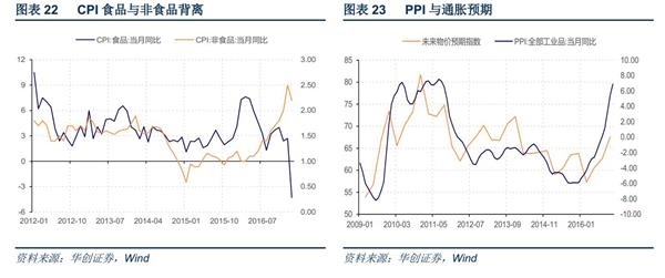 基于对需求判断,我们依旧认为2017年通胀中枢难以超越2016年,全年2%左右。通胀的潜在风险在哪?当前CPI和PPI的背离主要受食品和低端消费品拖累,后续PPI和房价预计都将处于高位,通胀预期也将随之上升,如果通胀预期最终影响到食品和低端消费品的价格运行,CPI和PPI的裂口将有可能通过食品价格的上涨来回补。我们认为这一潜在风险从四季度开始值得密切关注。