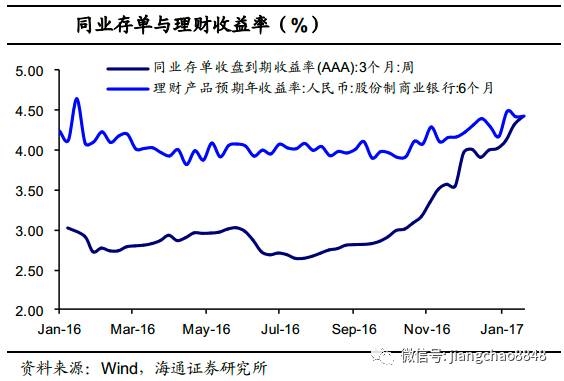 由于同业理财对接债券资产比对接非标资产要灵活,当央行抬高利率时,资产端调整会比较快,短期去杠杆效果也比较明显。一旦央行放松对短端的控制,随着债券收益率大幅提升,发行同业存单-对接同业理财—债券的链条将再次奏效,前期去掉的杠杆将死灰复燃。