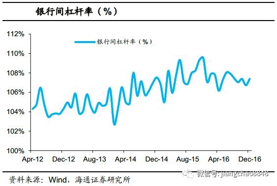 狭义杠杆指的是机构通过质押回购所加的杠杆率。16年3季度开始,央行货币政策中性的同时,通过拉长久期的方式试图去杠杆,我们看到4季度银行间杠杆从108%下降至106%左右,而交易所杠杆从128%下降到125%左右,回购杠杆的确有所趋降,整体杠杆水平并不十分高。从季节性角度看,16年4季度债市整体的质押回购杠杆率也要比15年同期低1-2个百分点。