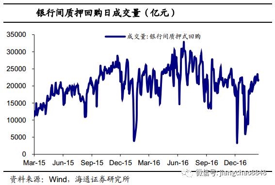待购回债券余额从16年3季度的4万亿回落至3.5-3.6万亿左右(12月末季节性因素,回购余额再度回升至4万亿以上)。从这个角度看,债市去杠杆略有成效,但是待购回余额和回购交易量仍要高于15年水平。