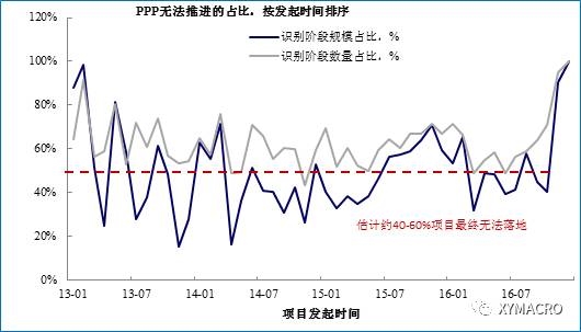 将落地PPP项目的生命周期和无法落地项目比例的结论相结合,我们可以得到新的PPP项目总生命周期,并以此测算PPP项目对经济的影响。事实上,我们测算与实际落地规模的情况基本一致,外推2017年PPP项目总落地规模约为1.9万亿,与2016年规模大体相当,但节奏可能相反(即2015年前低后高,2016年前高后低).