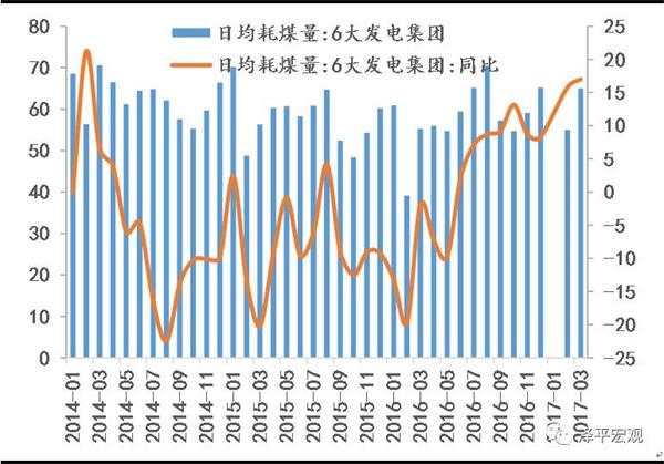 本周6大发电集团日均耗煤量环比上升4.9%,较上周上升7.6个百分点。截至3月24日,3月6大发电集团日均耗煤65.0万吨,高于2月的55.1万吨。3月发电耗煤量月化同比17.0%,较上周上升0.7个百分点,高于2017年前两月累计同比15.8%,工业生产维持回暖走势。