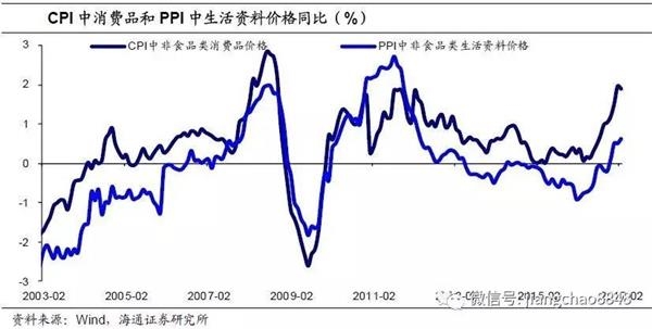 本轮PPI非食品类生活资料价格从16年1月份开始触底回升,CPI非食品类消费品价格从16年3月也开始反弹,预计回升仍将持续一段时间。但考虑到PPI中上游行业向生活资料的传导相对较弱,所以预计CPI非食品类消费品价格涨幅也将有限。