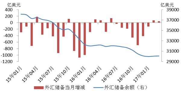 外储连续第2个月回升。2017年3月末官方外汇储备余额为30090.88亿美元,基本符合市场预期;3月外储较上月增加39.64亿美元,连续第2个月回升(图1).3月末SDR计价外储余额为22177亿SDR,较上月减少19亿SDR.