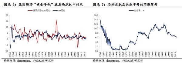 到70年代前后,全球重化工业产品需求逐渐疲软,1973年10月第一次石油危机爆发,德国遭受严重冲击,1974年GDP增速下降至0.9%,同时通胀水平高企,德国经济增长的“黄金年代”宣告结束。工业结构面临新的转型压力,以石油冶炼、钢铁、造船、金属等为代表的高能耗、高物耗、低附加值的传统重工业产能过剩现象凸显,国内主导产业衰落,企业大量倒闭,失业率上升。