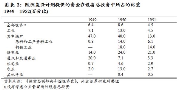 此外,1948—1952年间,旨在帮助欧洲复兴的“马歇尔计划”在美国倡导下实施,使德国先后获得14亿美元的援助,用来支付扩大工业生产所需的原料进口,再加上同期德国已开始利用贷款购置新机器,重新组装工厂,工业生产迅速恢复。